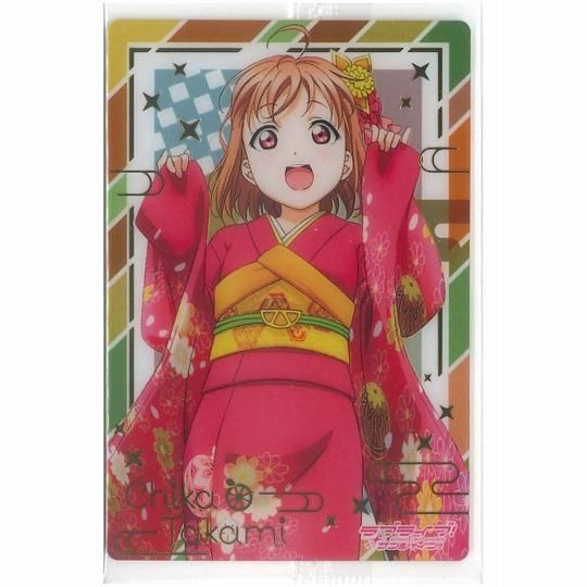 ▼この商品は【(レア) ブロマイドカード1:高海千歌 (晴れ着衣装 金色箔押しver.)】のみです。
