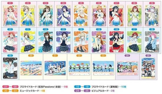 ブロマイドカードには、アニメオープニング主題歌「虹色Passions!」衣装のメンバーを収録。