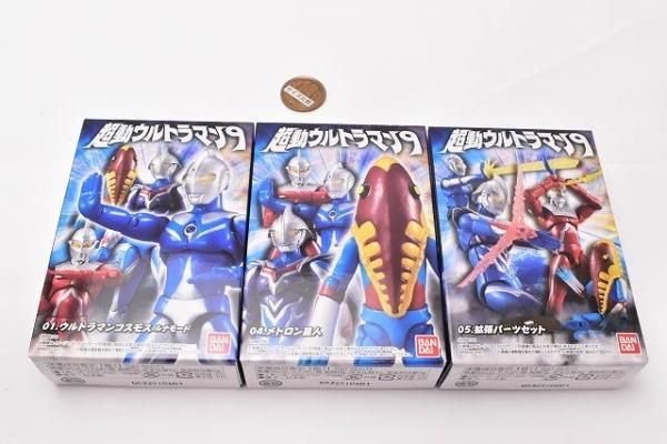 ▼この商品は【アソート3種セット(1.ウルトラマンコスモス ルナモード/4.メトロン星人/5.拡張パーツセット)】です。