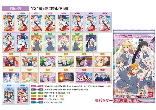 ブロマイドカードには、TVアニメオープニング曲の「START!!True dream」衣装と夏制服を収録!