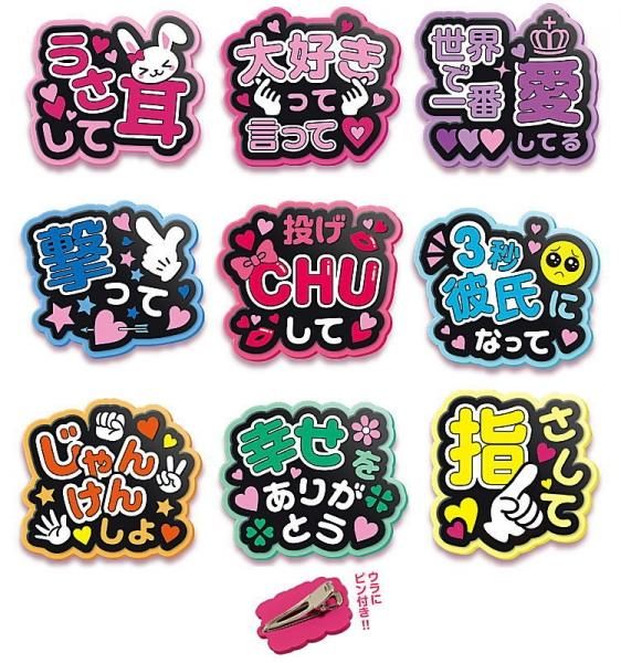 アイドルのコンサート会場ではお馴染みの”ファンサうちわ”をイメージした色とりどりでかわいいデザインのヘアピンです♪