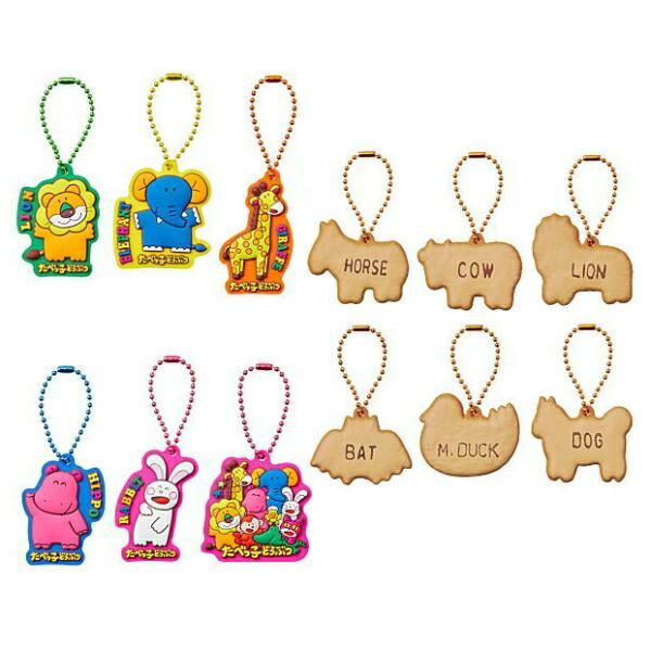 ビスケットをリアルに再現した6種と、「たべっ子どうぶつ」の仲間たちをデザインした6種の、 全12種のぷっくり半立体のラバーマスコットです。