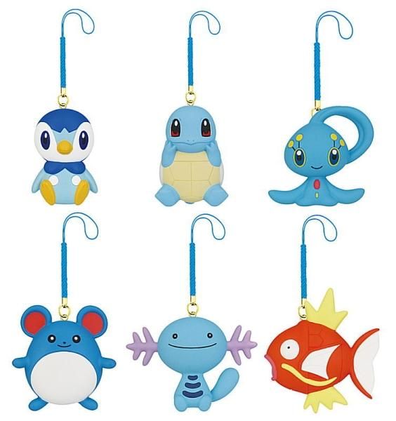 ぺたんこフォルムがかわいい、ポケモンたちの半立体のマスコット。みずタイプポケモンのイメージに合わせて、青色の根付が付属しています。全種類を揃えて一緒にお出かけしよう!