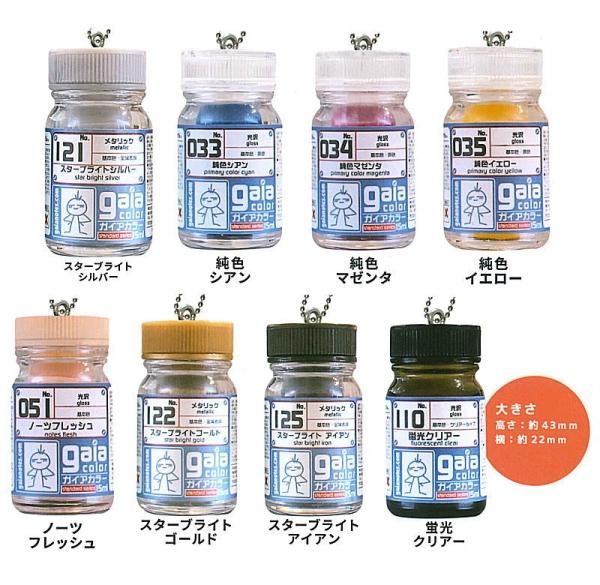 プラモデル塗装にはかかせない、おなじみのガイアノーツの塗料が再びミニチュアキーチェーンに!!