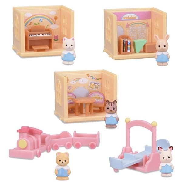 シルバニアファミリーが小さくなった「つながるお部屋」シリーズ、今回は「森のたのしいようちえん」がテーマ。汽車に乗ったり、お歌をうたったり、絵本を読んだりしていっしょにあそぼう!