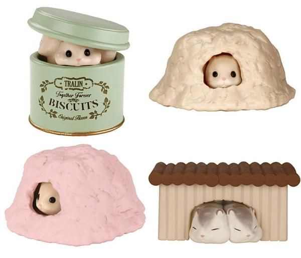 おうちや缶の中にハムスターたちがぎゅーっと詰まっています。あけてみて確認してね!