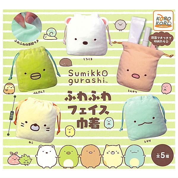 【全部揃ってます!!】すみっコぐらし ふわふわフェイス巾着 [全5種セット(フルコンプ)]【ネコポス配送対応】【C】