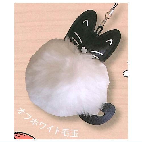 ふさふさ黒猫マスコットストラップ [3.オフホワイト毛玉]【 ネコポス不可 】【C】