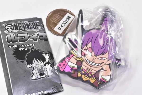 ルフィのこれまでのギアシリーズを全種集めたラバーマスコットです。ギア2からギア5までのルフィとその時の敵キャラをラインナップ。