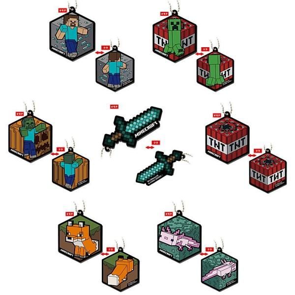 大人気「MINECRAFT(マインクラフト)」のカプセルラバーマスコットが登場!両面ラバーで納得のボリューム感です!