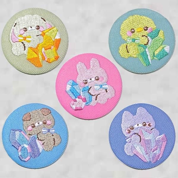 人気のすくっとたっちさん。おしゃれな刺繍缶バッジになりました!