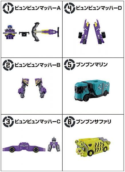 1〜4のビュンビュンマッハーを変形させることで「ビュンビュンマッハーロボ」が完成!また一部パーツは4月に発売済の1弾「ブンブンジャーロボ」と武装合体可能!