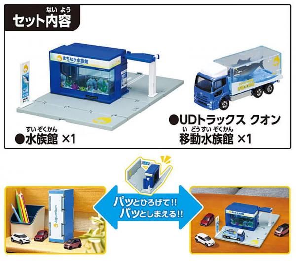 パッと開いてすぐ遊べるトミカタウンに水族館が登場! 移動水族館トミカ1台付き!